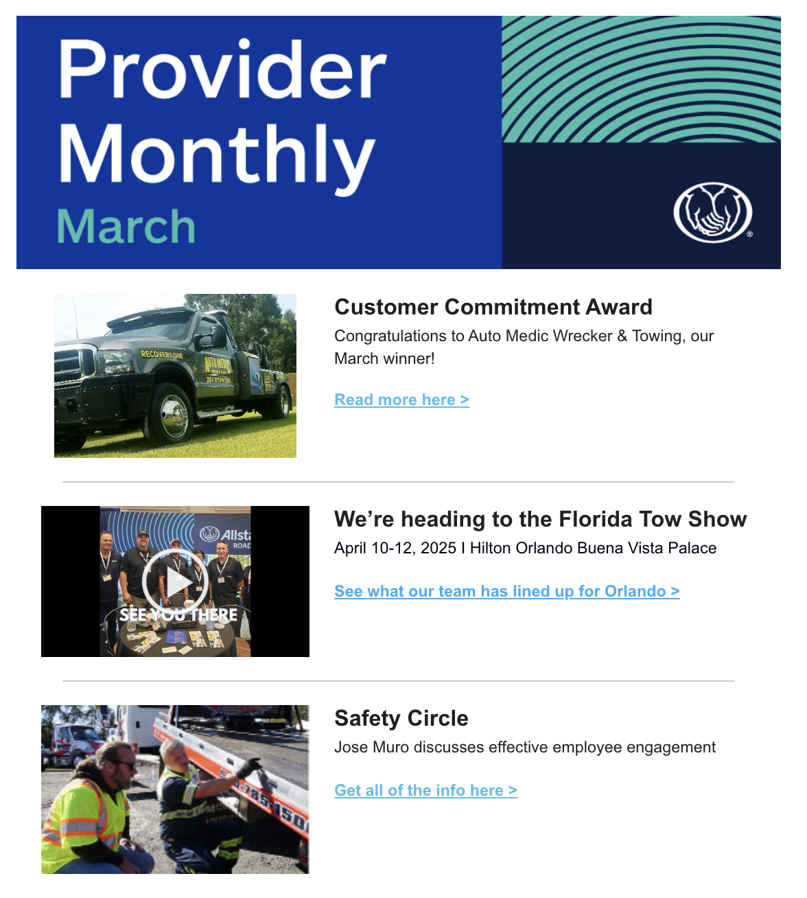 I have been designing newsletter headers and templates for Allstate Roadside for the past 10 years.
